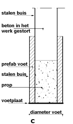 | De stalen buispaal is de meest toegepaste paal bij beperkte werkruimte. De paal wordt opgebouwd uit ter plaatse aan elkaar gelaste stalen buiselementen. In het eerste buiselement bevindt zich een grindprop. Op deze grindprop valt een heiblok, waarbij de buis zelf als geleiding voor het blok dient. Wanneer de buis op diepte is, wordt hij afgesneden op de juiste hoogte en gevuld met beton, met een kopwapeningsnet over de bovenste meters. Het is mogelijk de paal te voorzien van een verbrede voetplaat of een verbrede voet van gewapend beton of een na het indrijven te maken uitgeheide voet. |
