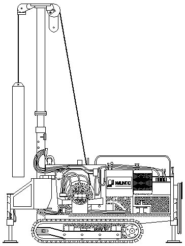 Tekening van een zeer kleine funderingsmachine (een voorbeeld, want ook kleinere en grotere machines zijn beschikbaar). breedte: 0,7 meter lengte: 2,8 meter doorrijhoogte: 2 meter (eventueel na demontage 1,75 meter) werkhoogte: vanaf 2 meter capaciteit: heiblokken tot 1000 kg kleur terug |